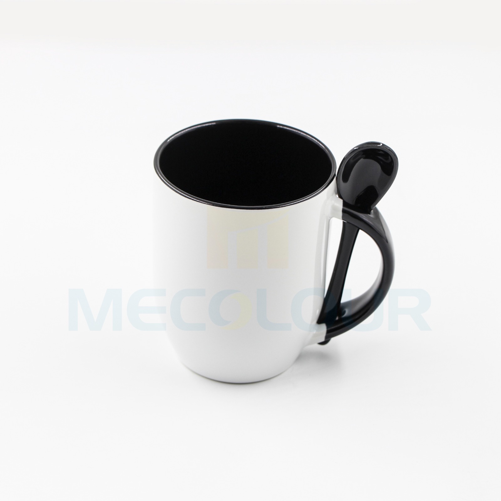 Caneca com Colher de Cerâmica para Sublimação Preta 325 ML-Mecolour